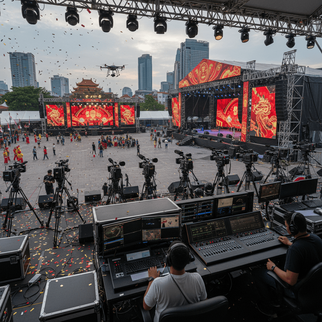 Jakarta's 2026 Chinese New Year festivities showcase cutting-edge video technology across multiple venues. From LED displays to live streaming infrastructure, discover how modern production tech transforms traditional celebrations.